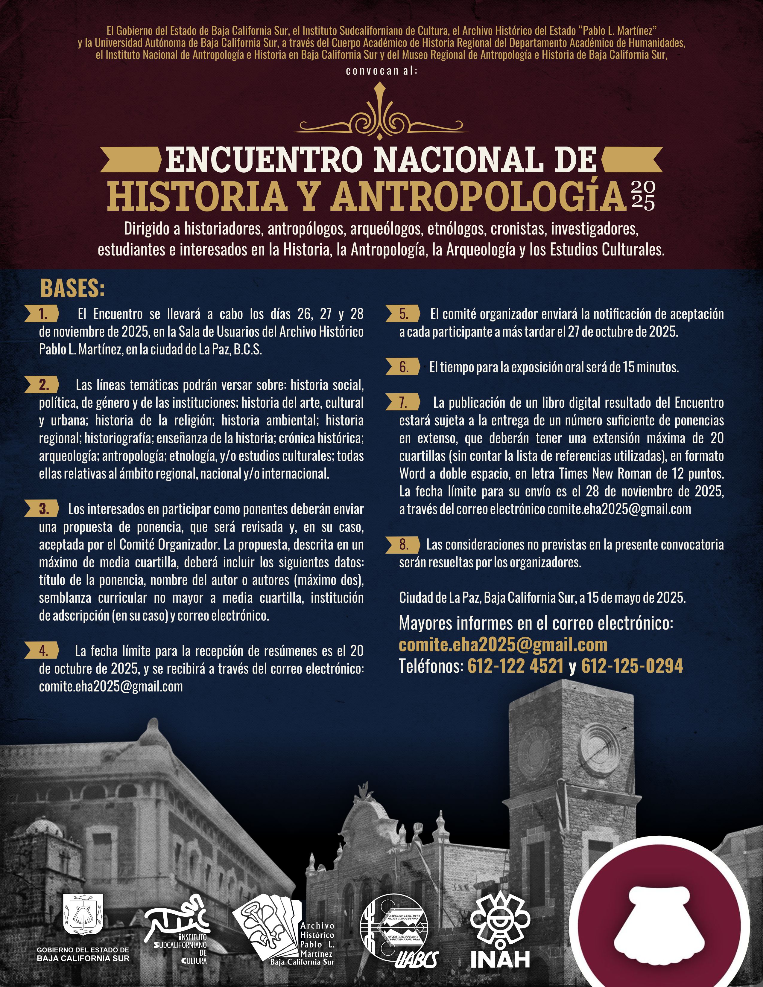 El Encuentro se llevará a cabo los días 26, 27 y 28 de noviembre de 2025, en la Sala de Usuarios del Archivo Histórico Pablo L. Martínez, en la ciudad de La Paz, B.C.S.